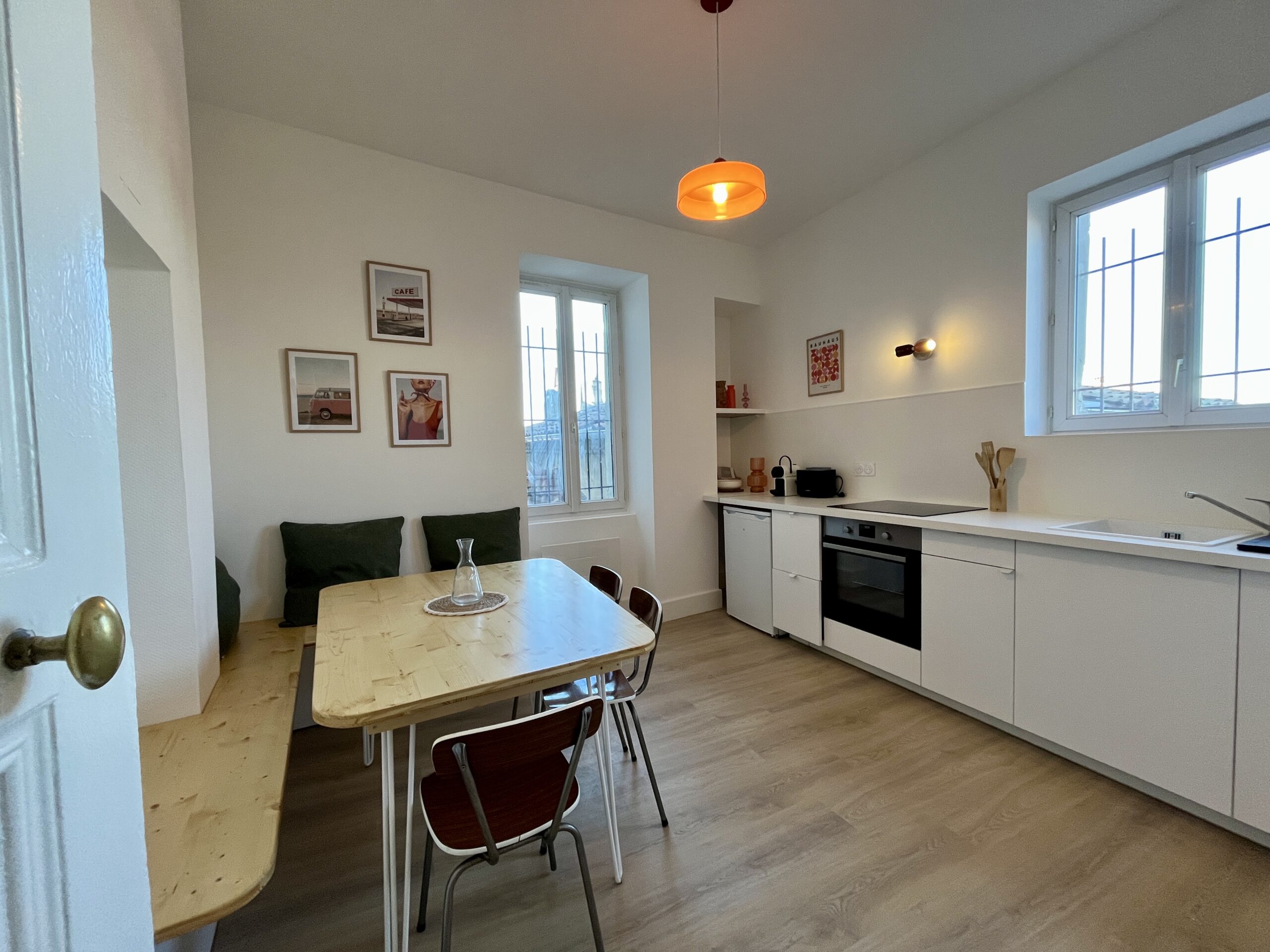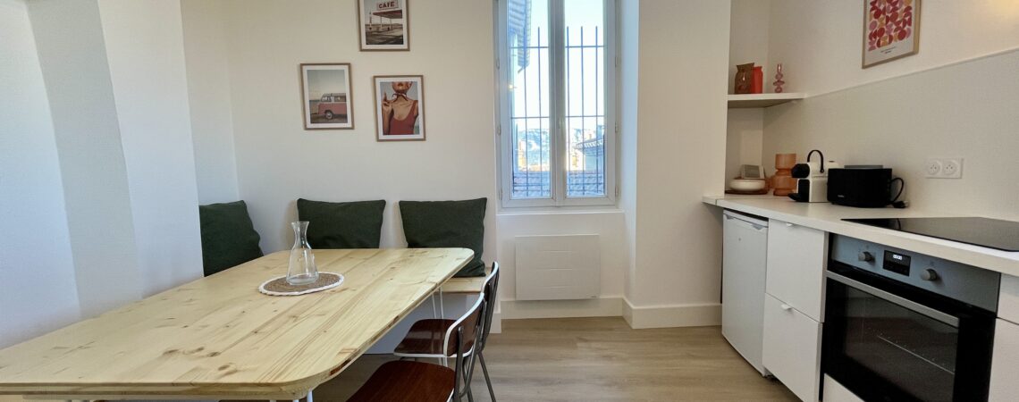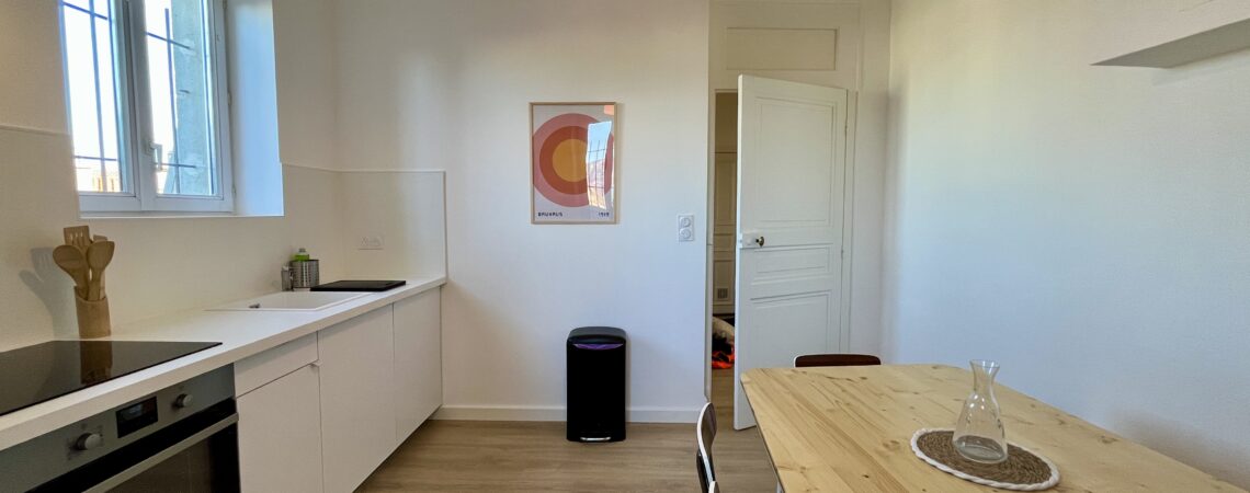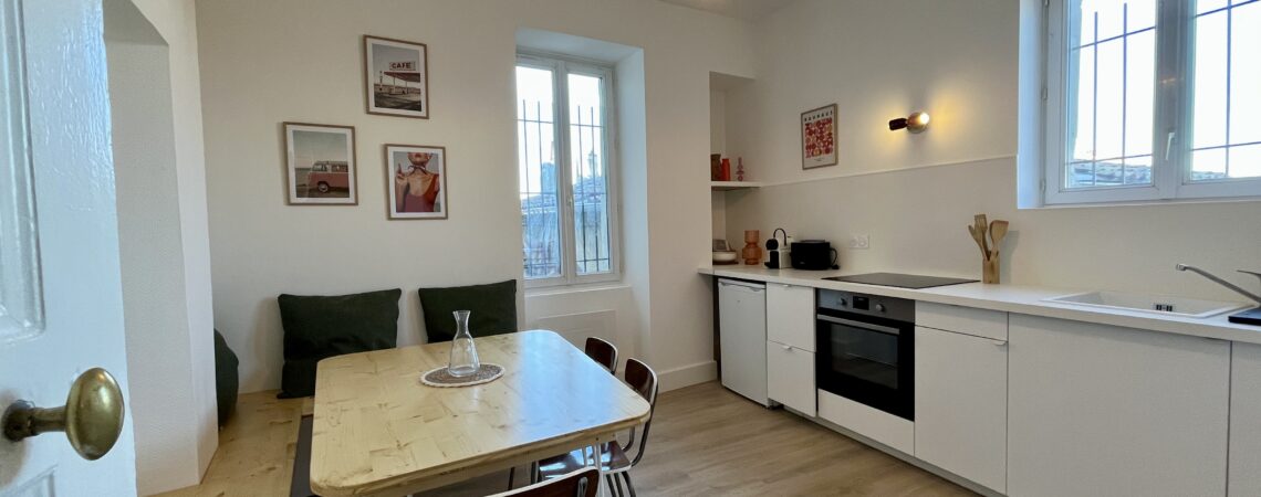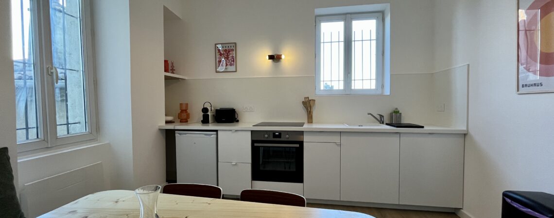 CHEZ MARIET3 dans un splendide immeuble bourgeois, rénové récemment, au dernier étage avec ascenseur. Vous apprécierez la luminosité et le calme dans cet appartement, ainsi que la position centrale à Valence, à 2 pas des commerces et transports et commun . Maison non fumeur – animaux non admis