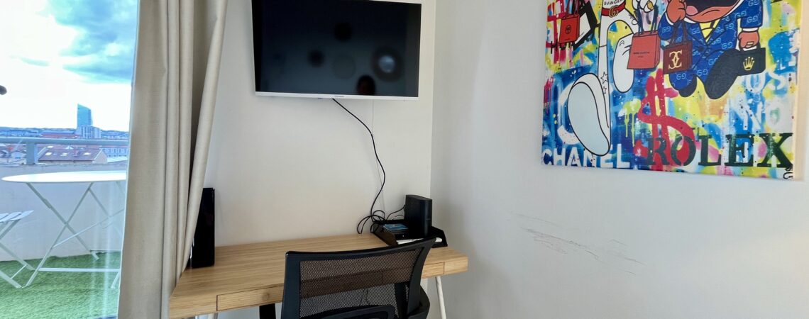 • Cafetière • Machine à laver • Internet en WiFi avec la fibre optique Location d’appartement en location courte durée à Lyon 400€/semaine -40€/nuit pour une réservation de plus d’un mois Location pour un séjour de 2-3 nuits minimum possible pour une réservation de dernière minute Les tarifs sont dégressifs en fonction du nombre de nuits. Ils comprennent : En supplément, nous vous proposons d’autres services comme le ménage en cours de séjour.