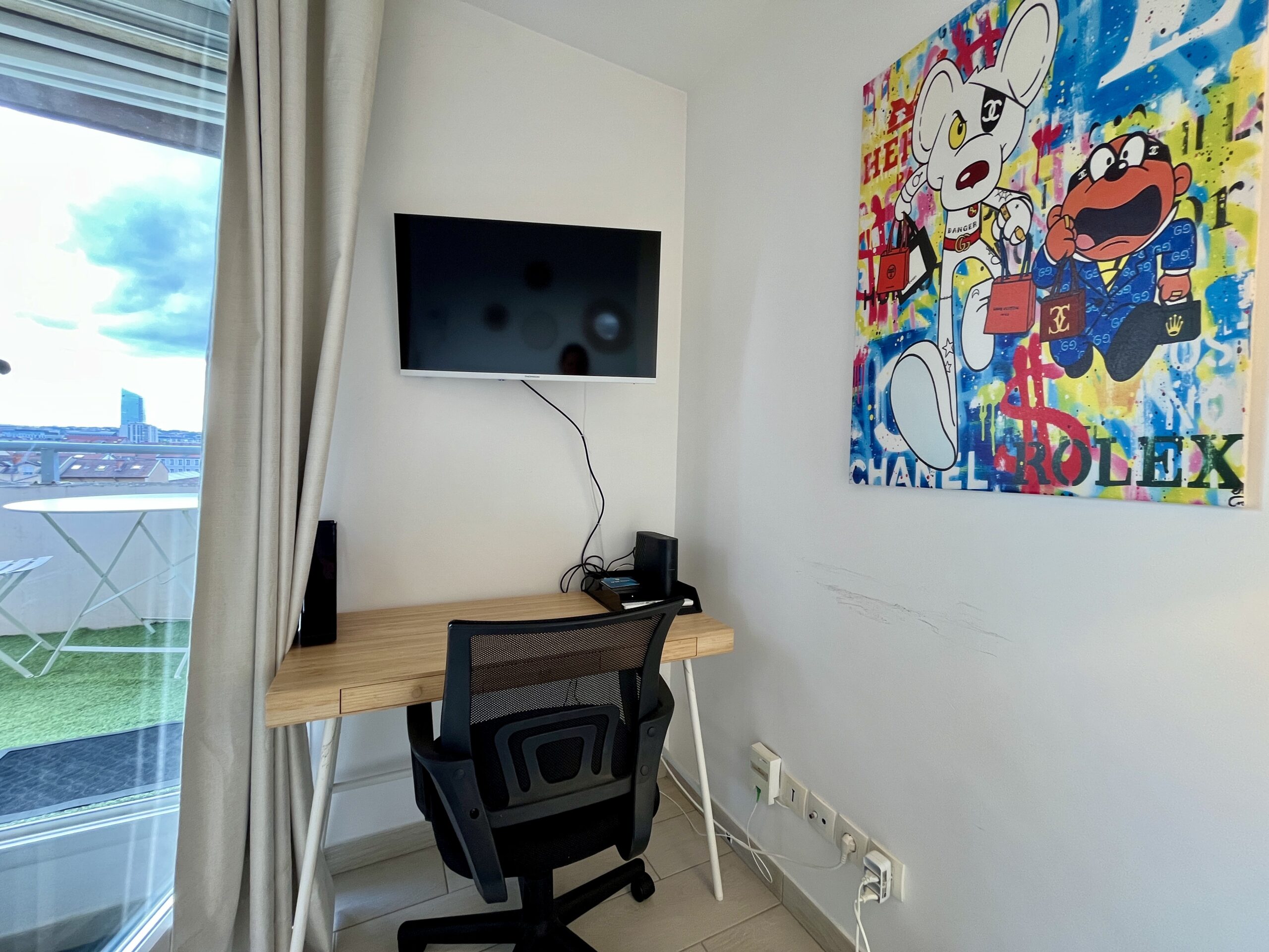 LE DEDIEUSitué au dernier étage d’un immeuble récent, proche du métro République, à 2 arrêts de Lyon 6 et du parc de la tête d’Or, vous séjournerez ici au calme et bénéficierez d’une magnifique vue sur les toits lyonnais et la basilique de Fourvière. Le studio a été rénové très récemment, est très bien équipé, confortable et bénéficie d’une magnifique terrasse de 13m2. Appartement non fumeur – animaux non admis